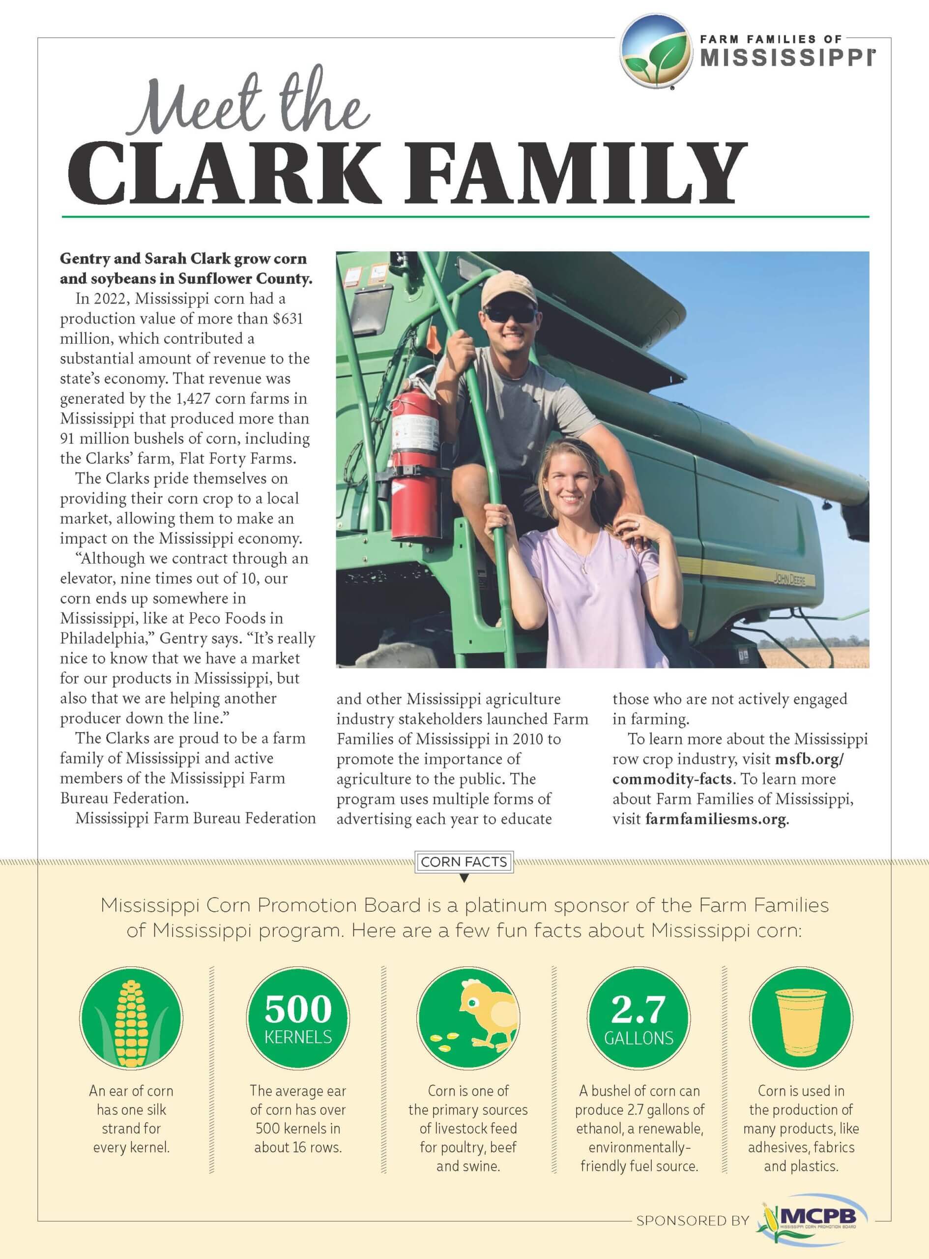 The Clarks pride themselves on providing their corn crop to a local market, allowing them to make an impact on the Mississippi economy.